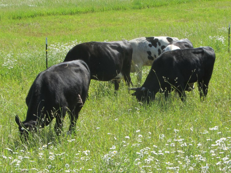 Our cattle transform grass, weeds and hay into lean tender tasty meat. This meat is naturally higher in omega-3 fatty acids than conventionally raised beef. Animals that are free to roam on pasture are more muscular and vigorous. When the meat is finished on grass, the proportion of the animal that is usable is higher because there is much less fat than corn finished cattle. Our beef is processed by Ebels, a USDA-inspected meat packing facility.