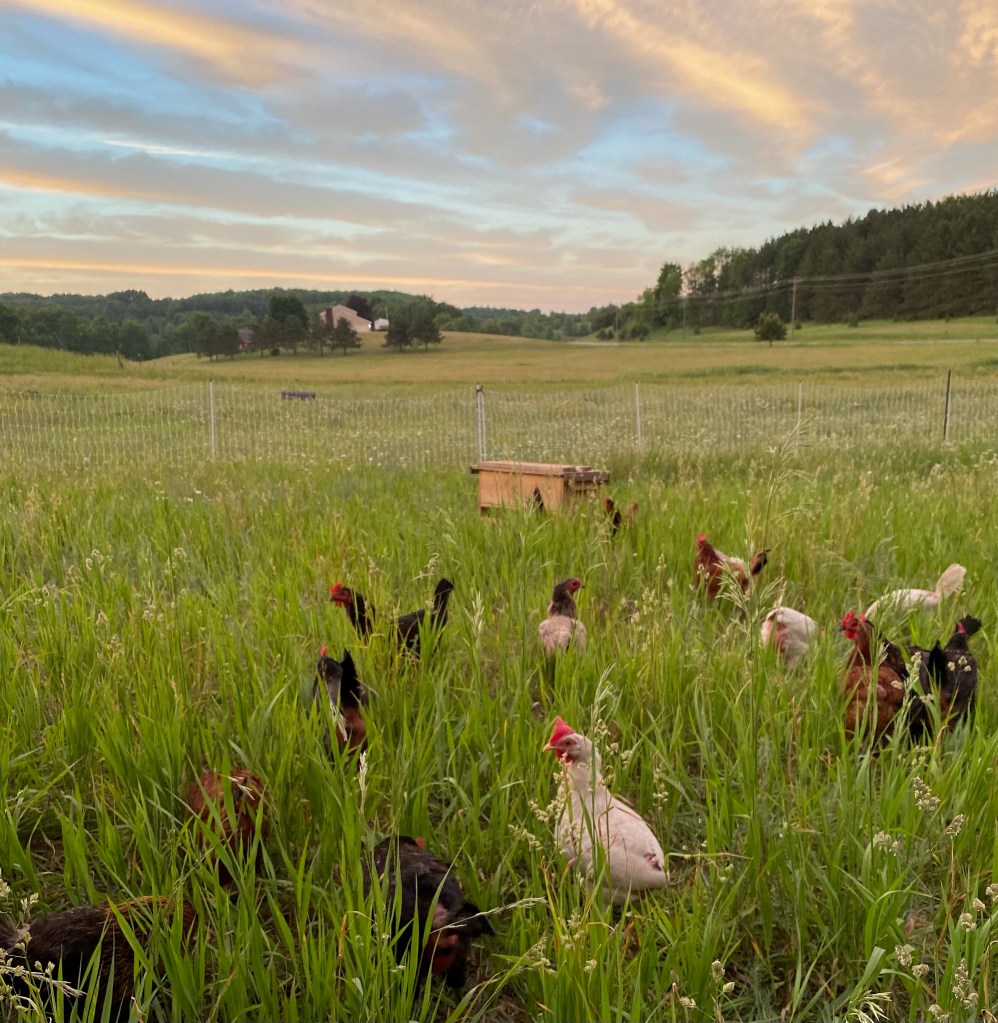 - Our Pigs and chickens are raised outdoors on pasture